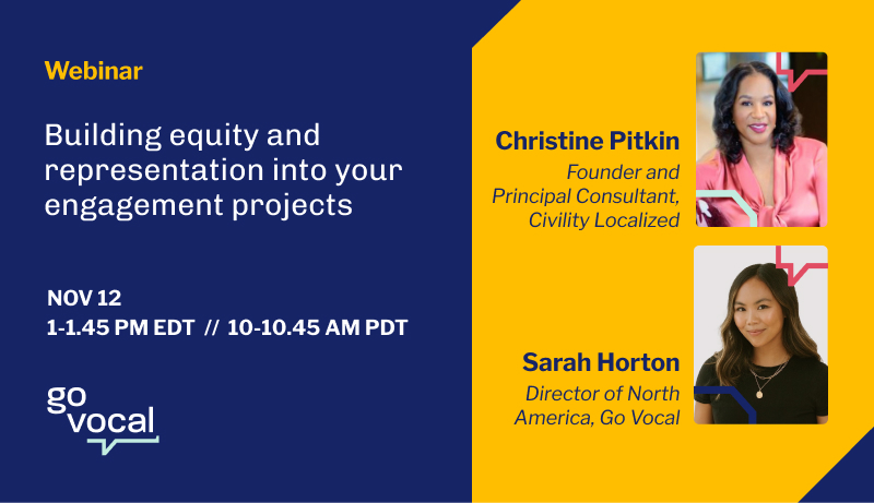 Go Vocal is thrilled to partner with Civility Localized, an engagement consultancy firm with deep expertise in inclusive engagement, for an upcoming webinar on how to embed equity and representation into your engagement strategy.